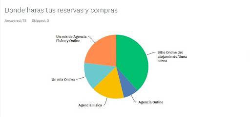 A pesar de las predicciones los sitios online de líneas aéreas y de hoteles y centrales de reservas siguen liderando la opción (con menos adeptos que en tiempos previos a Coronavirus es cierto) con 35% de las preferencias. Las agencias físicas están en el tercer lugar con el 17% y en segundo lugar (también interesante para las agencias físicas) se presenta la opción de compra en un mix de agencia física y sitios online directos, lo que indica algún reparo en ciertos tipos de contrataciones. Bastante atrás quedan las opciones de Agencias Online con el 8%. Problemas en post venta?