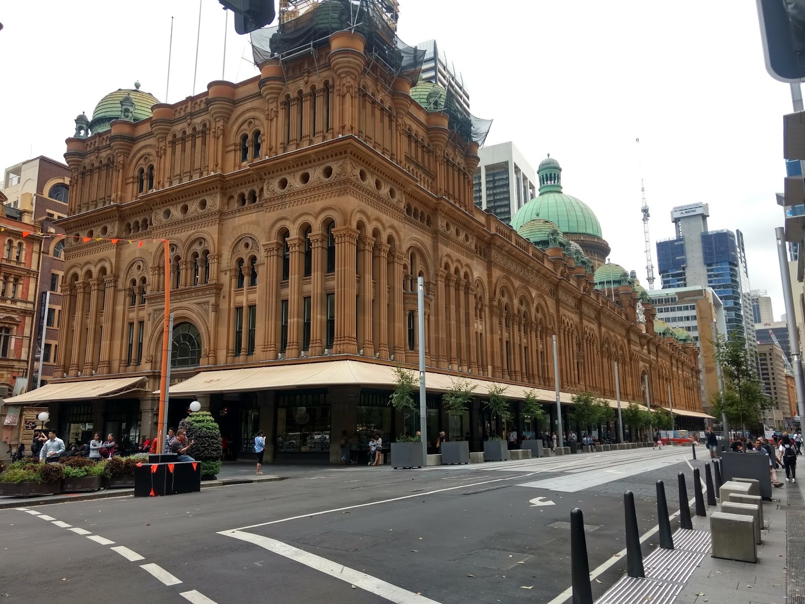Sin embargo un punto interesante de Pitt Street es Queen Victoria Building, un precioso edificio del siglo XIX que originalmente fue diseñado para ser un mercado, paso por otros usos y termino siendo un centro comercial muy interesante. Vale la pena darse una vuelta por allí y caminar sus espacios interiores admirando el techo, las terminaciones de sus escaleras y el edificio en si mismo. Sobre el lado de George St. una estatua de la Reina Victoria preside el lugar y a un costado la estatua de 60 centimetros del Terrier Cairns de la Reina sobre una fuente se dice que cumple los deseos de quienes “donan” allí. Unos parlantes ocultos dejan escuchar al perro “pidiendo” dinero. www.qvb.com.au